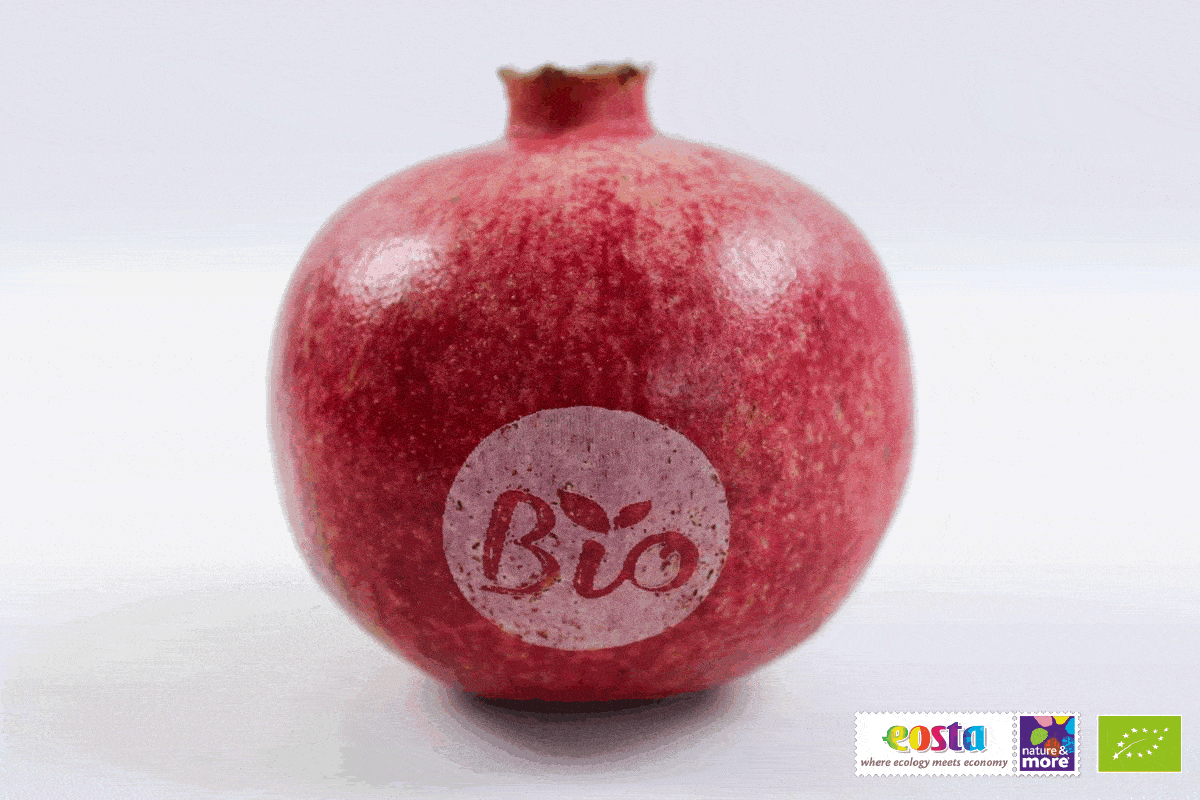 Aujourd'hui, Eosta propose le "Inverted Natural Branding" (marquage naturel inversé). Cette technique consiste à brûler le logo ou le code de manière diapositive, c'est-à-dire à brûler l'environnement mais pas le logo ou le texte. De cette manière, nous simulons la forme d'une étiquette, ce qui crée un plus grand contraste avec la couleur du produit. Le logo gravé au laser est ainsi beaucoup plus visible et le client peut encore mieux reconnaître le produit comme étant biologique !